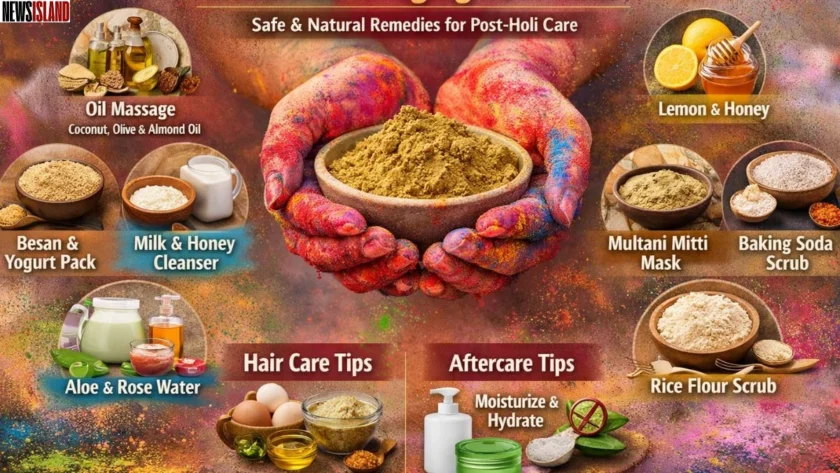 From coconut oil to multani mitti, discover homemade remedies that gently remove Holi colors without damaging your skin